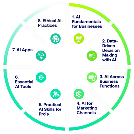 This course is designed for professionals who want to harness the power of AI across both marketing and broader business. Learn how to integrate AI into processes, enhance decision-making, and drive innovation and growth across your organization.